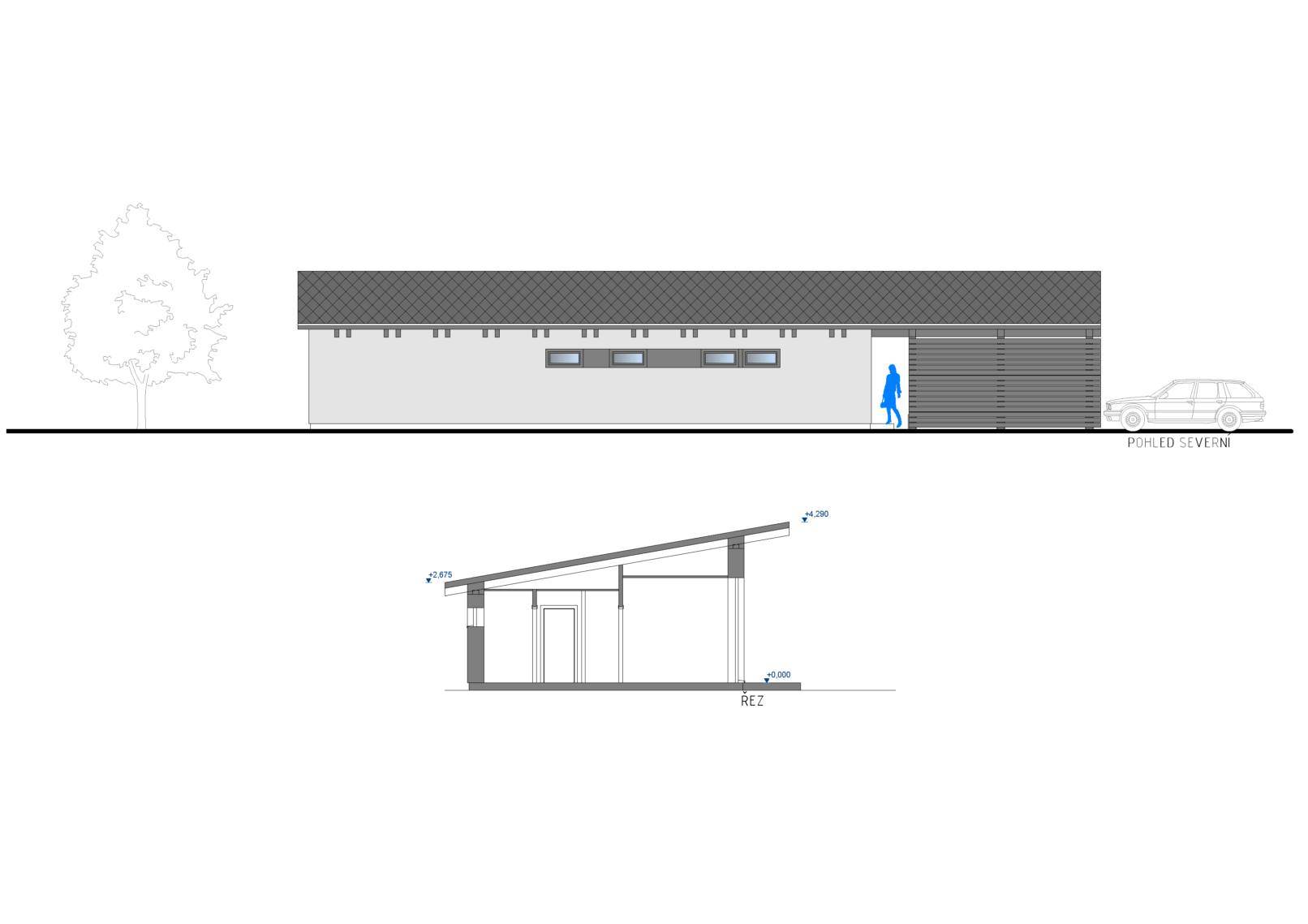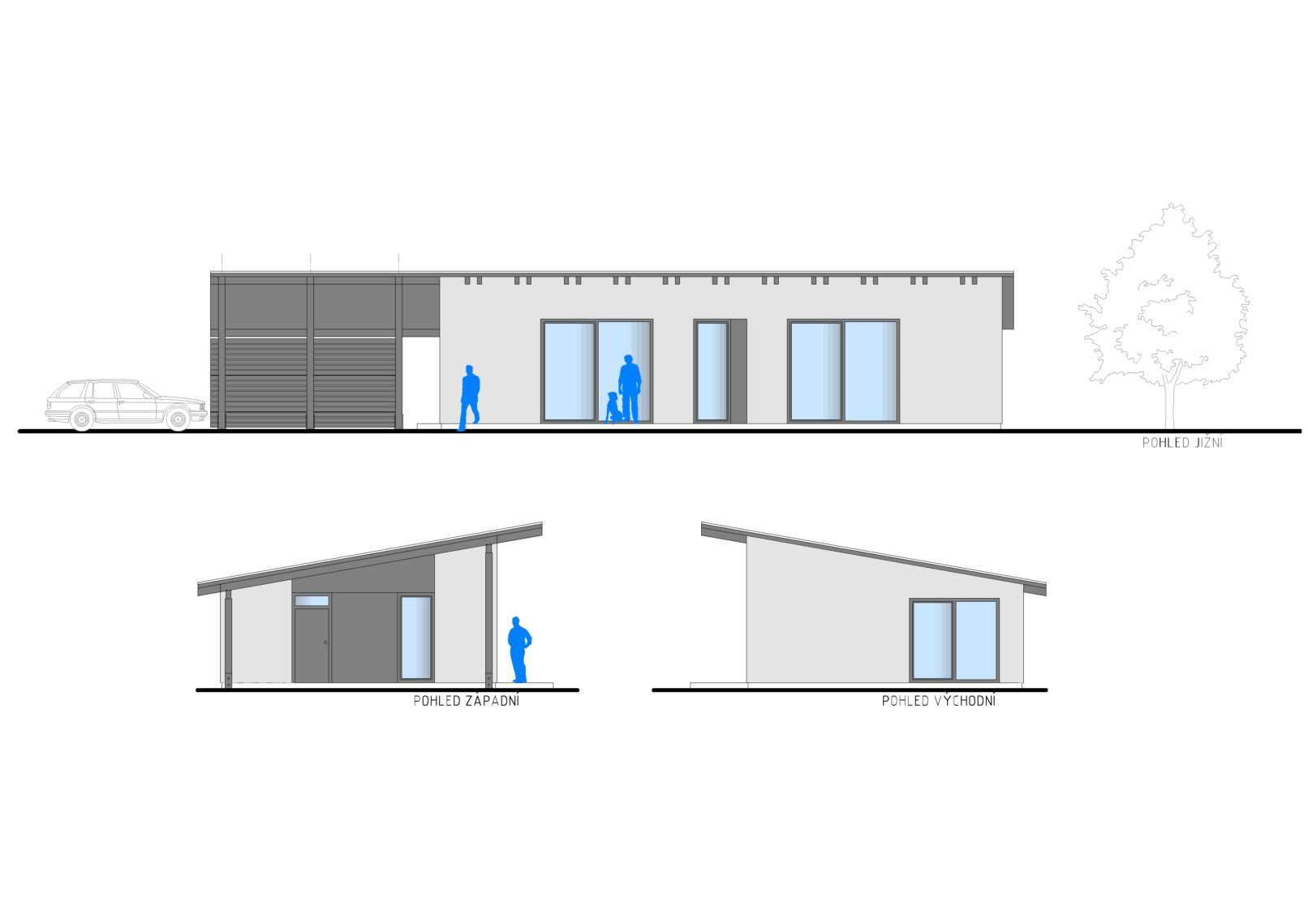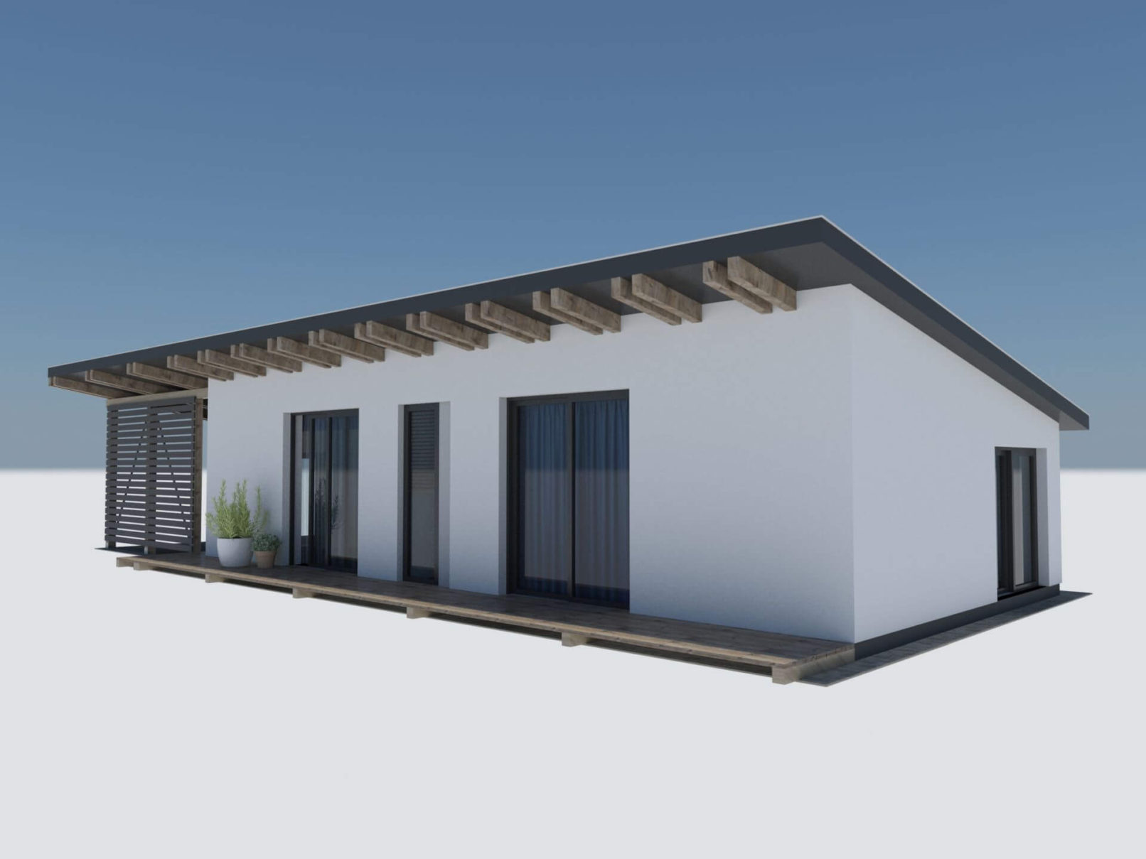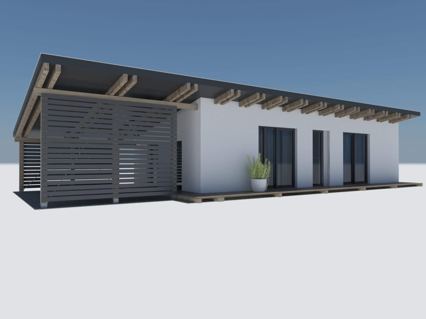Projekt řeší návrh jednoduchého rodinného domu v dispozičním řešením odpovídajícím 3+KK. Konstrukčně je dům zděný, jednopodlažní s pultovou střechou, která je protažená i nad parkovací stání.
