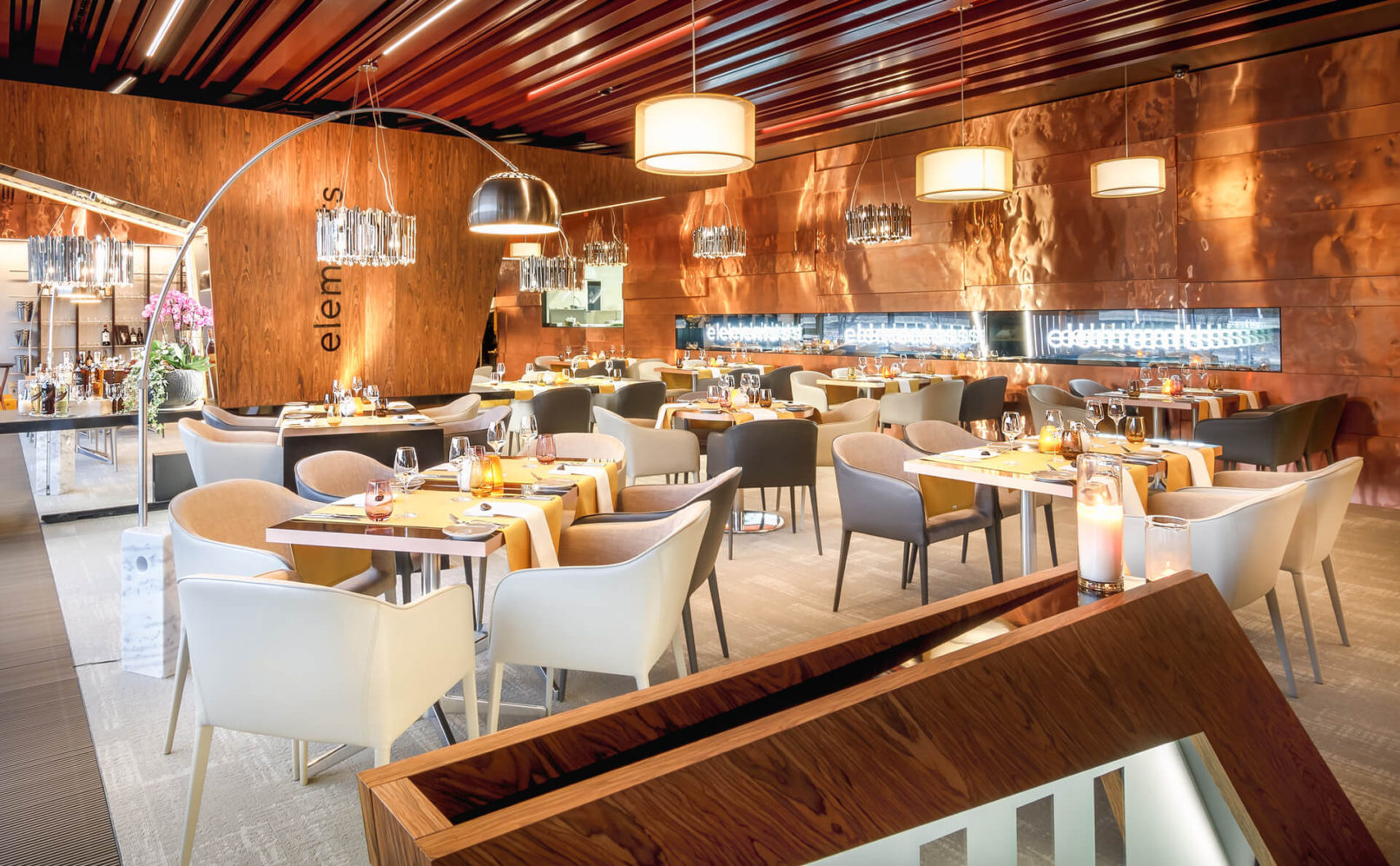 Projekt restaurace Elements je další fází rekonstrukce Hotelu President v Praze navazující na předešlé práce v 1.NP a 1.PP. Vstup do restaurace je kolem recepce hotelu. Je plánován samostatný vstup přes vnější prosklenou fasádu společně s realizací předzahrádky.