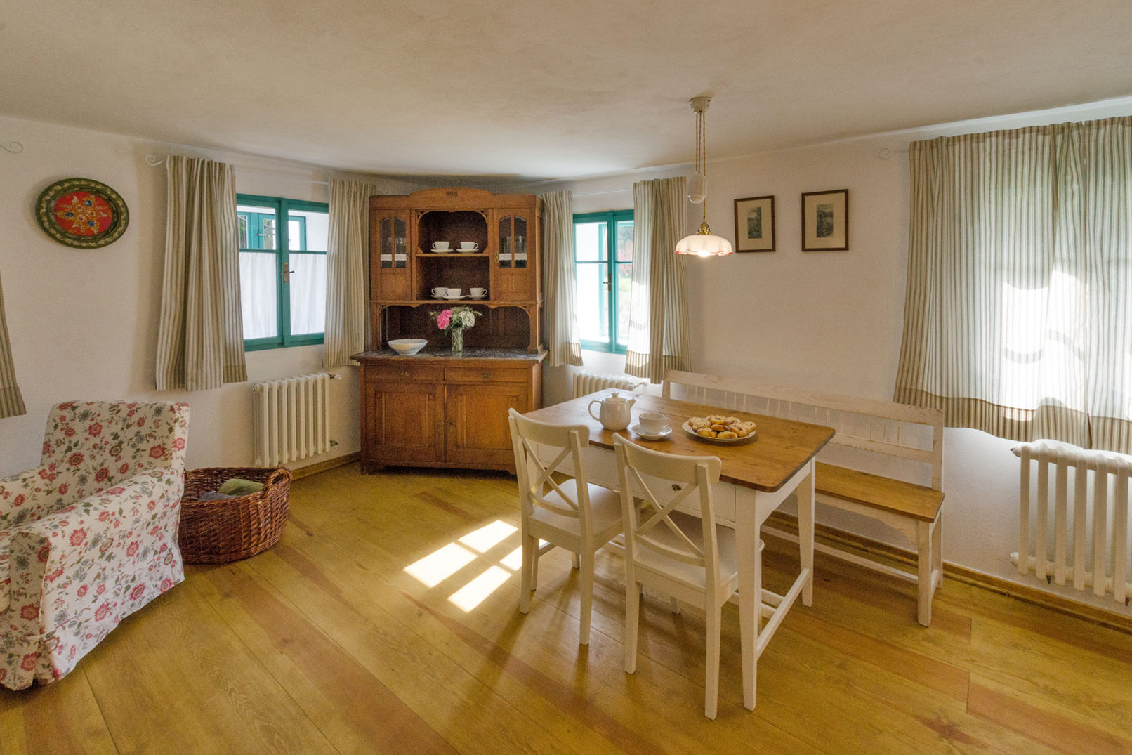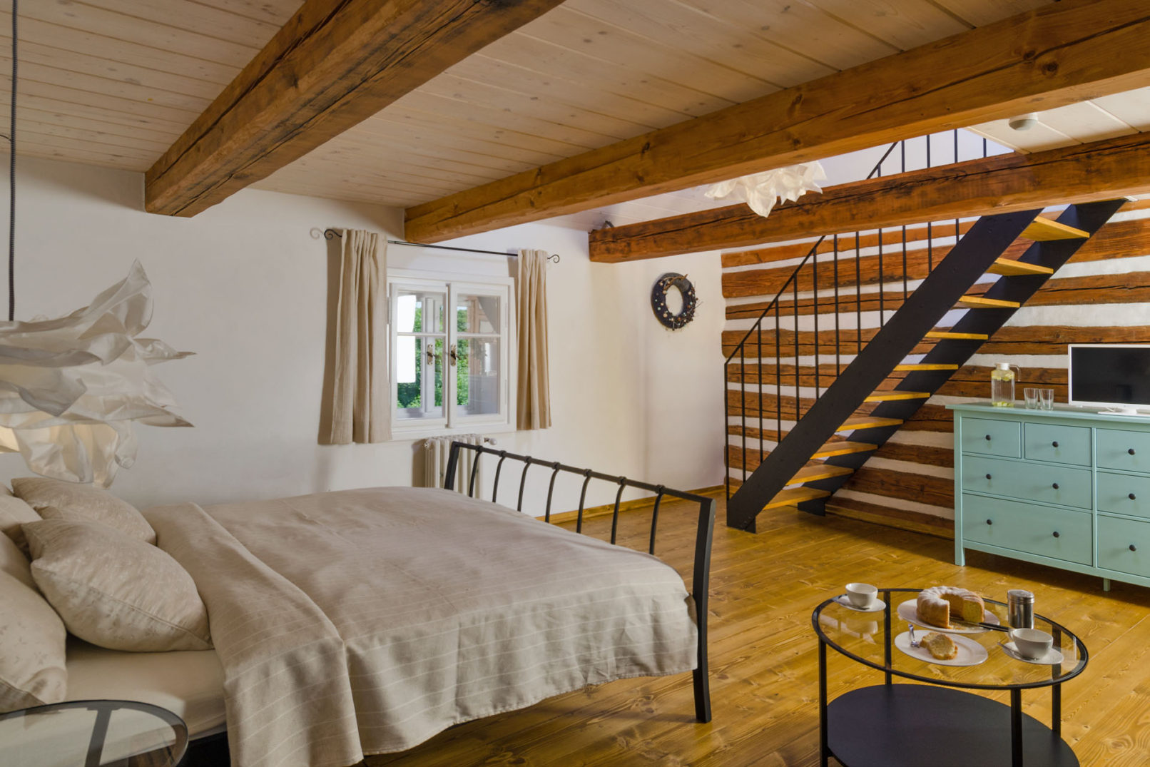 Hlavní hmota statku má tvar písmene L. V přízemí se v původní hospodářské části navrhla jídelna a společný prostor pro hosty, spolu se zázemím kuchyně a ve středu dispozice vstupní prostor s recepcí. V původní obytné části byl navržen apartmán a dvojlůžkový pokoj. Nad přízemím se nachází patro s dalšími pokoji a apartmánem. Toto patro je přístupné po otevřeném venkovním, dřevěném schodišti a krásné, původní dřevěné pavlači, ze které se vchází do jednotlivých pokojů. Nad jídelnou byl již v minulosti proveden nový krov a původní prostor zde byl otevřen až do hřebene střechy. Proto byl tento prostor využit na mezonetové pokoje. V roubené části se nacházejí menší, dvojlůžkové pokoje a v pravém křídle je další prostorný apartmán.