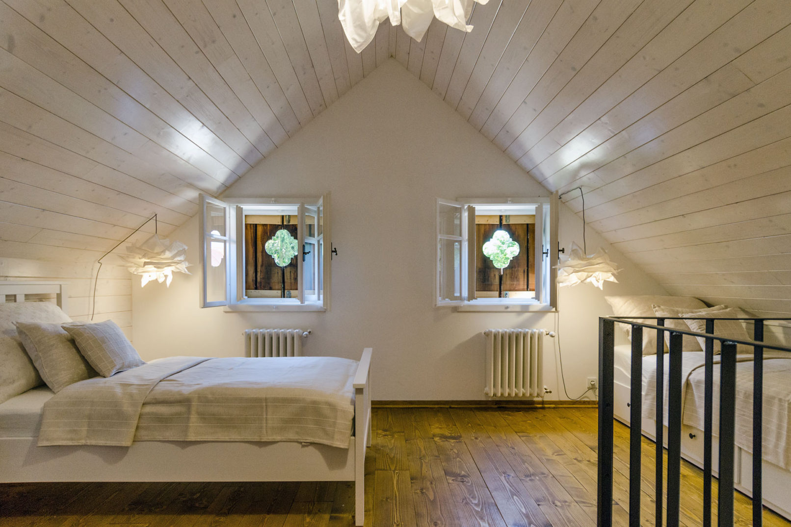 U mezonetových pokojů byly ve střeše provedeny nové vikýře, které byly velice citlivě vsazeny do konstrukce střechy.